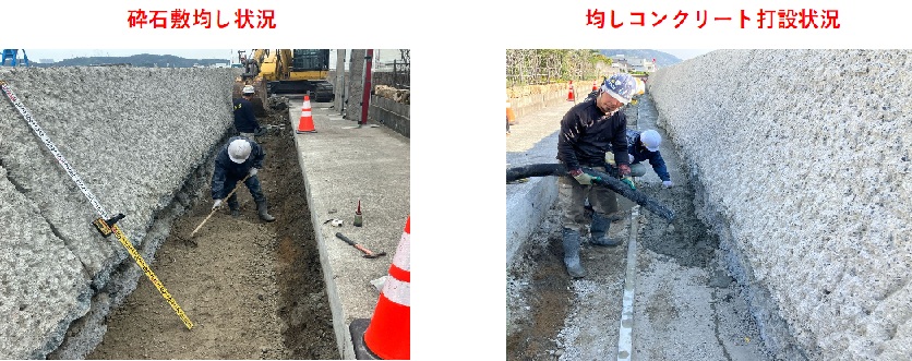 11月はコンクリートの取壊しと床掘・砕石の敷均し・均しコンクリートの打設を行いました。