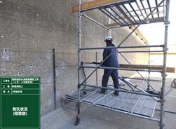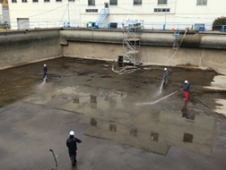 1号配水池ですが、水抜き後清掃、鉄筋探査を行い現在せん断補強筋の削孔とひび割れ調査を行っています。