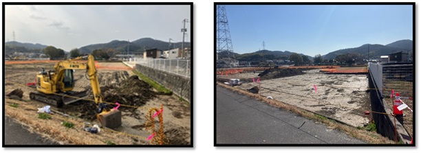 右側の写真が借地の表土剥ぎ取り完了の写真です。