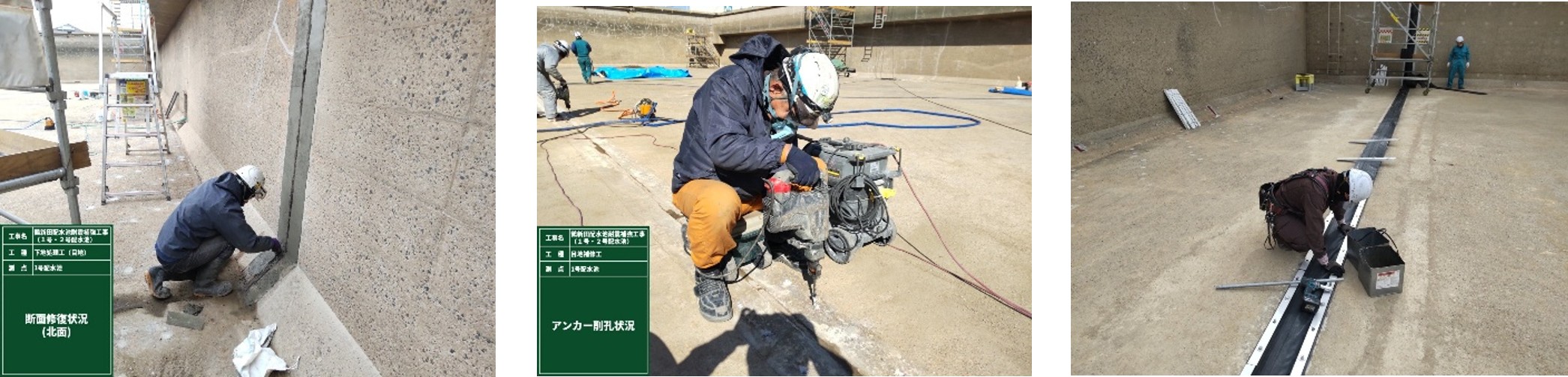 水槽内ひび割れ補修