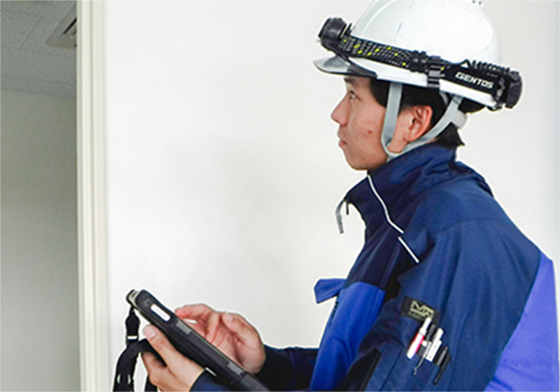 僕は施工管理の補助業務を担当しています。現在の工程で言うと、墨出し中です。施工計画に順じて行う事を進めていくのですが、まだ分からない事が沢山あります。他には、安全書類やKYチェックを日々確認し、安全行動に誰よりも気を付けています!自分の父親より年上の先輩に教えてもらいながら一緒に現場で働いています。
